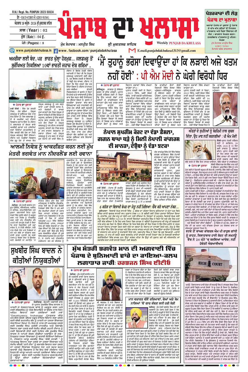 Epaper - 19/04/2026 April 19, 2026 1 2 3 4 Page 1Page 2Page 3Page 4Page 5Page 6Page 7Page 8 × Epaper - 19/04/2026 Page 1Page 2Page 3Page 4Page 5Page 6Page 7Page 8 << First << 1 >> Last >> Page no 1Page no 2Page no 3Page no 4Page no 5Page no 6Page no 7Page no 8 Page 1